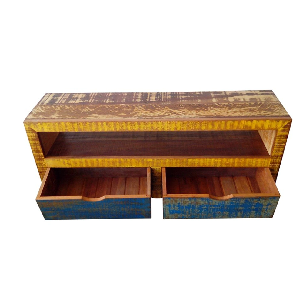 Rack estruturado em madeira de demolição, material ecologicamente correto. A peça possui curvas tradicionais, desgastes propositais na madeira e tonalidades naturais, características ideais para levar uma vertente rústica e charmosa para sua decoração. O rack é uma ótima dica para repaginar o seu espaço com tendências que fizeram sucesso no design das décadas passadas, sem perder a funcionalidade no momento de decorar.