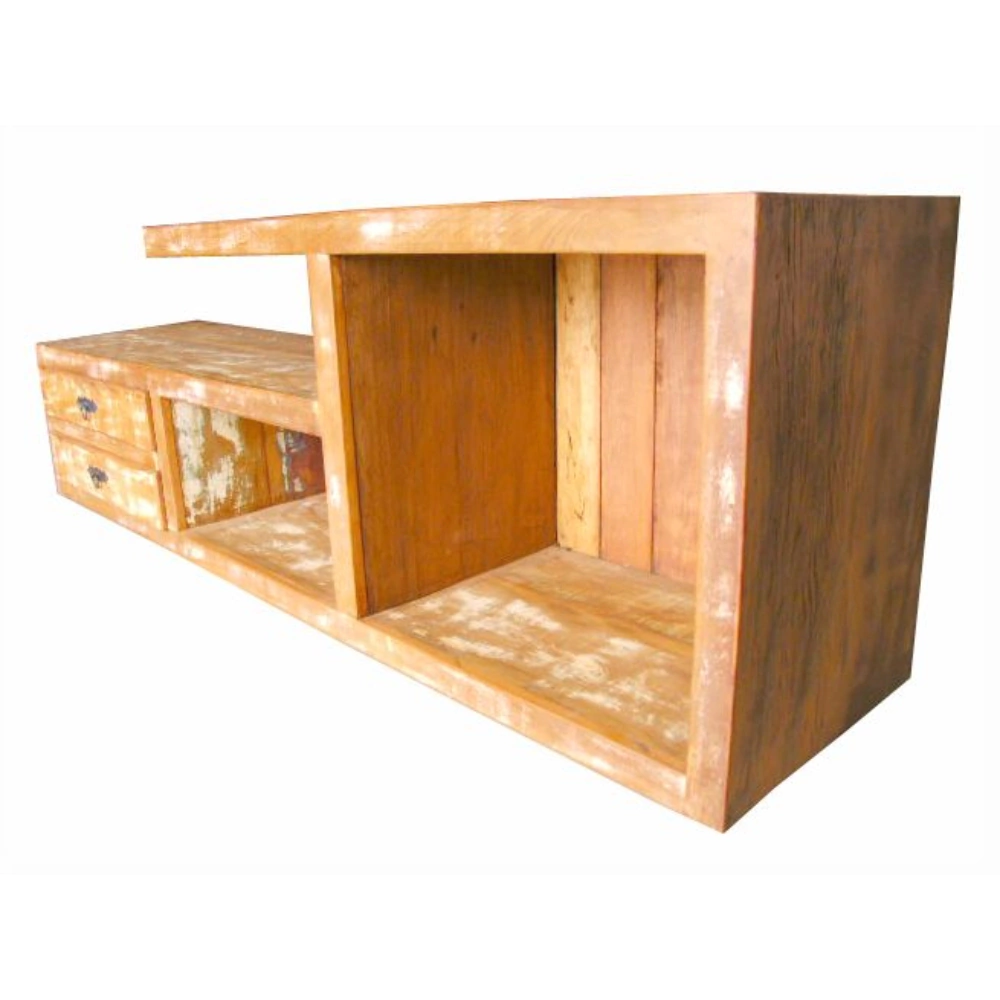 Rack estruturado em madeira de demolição, material ecologicamente correto. A peça possui curvas tradicionais, desgastes propositais na madeira e tonalidades naturais, características ideais para levar uma vertente rústica e charmosa para sua decoração. O rack é uma ótima dica para repaginar o seu espaço com tendências que fizeram sucesso no design das décadas passadas, sem perder a funcionalidade no momento de decorar.